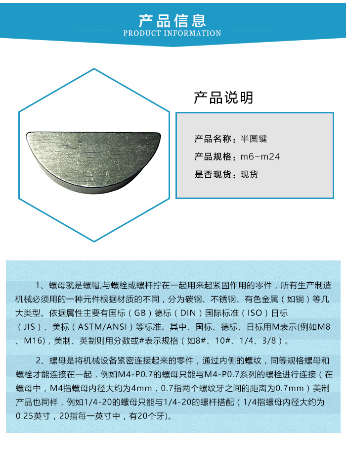 71.非標半圓鍵是鍵的一種,其上表麵為一平麵,下表麵為半圓弧麵,兩側麵平行,俗稱月牙鍵。