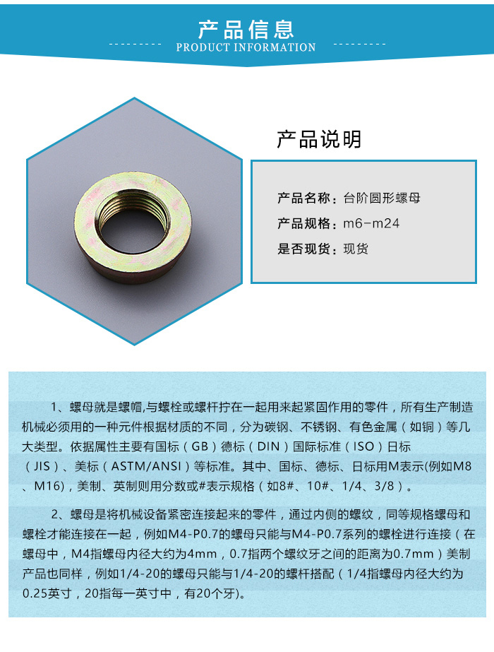 台階圓形螺母廠家阿國標準件告訴您正確安裝台階圓形螺母的指南,讓您在安裝時輕鬆應用