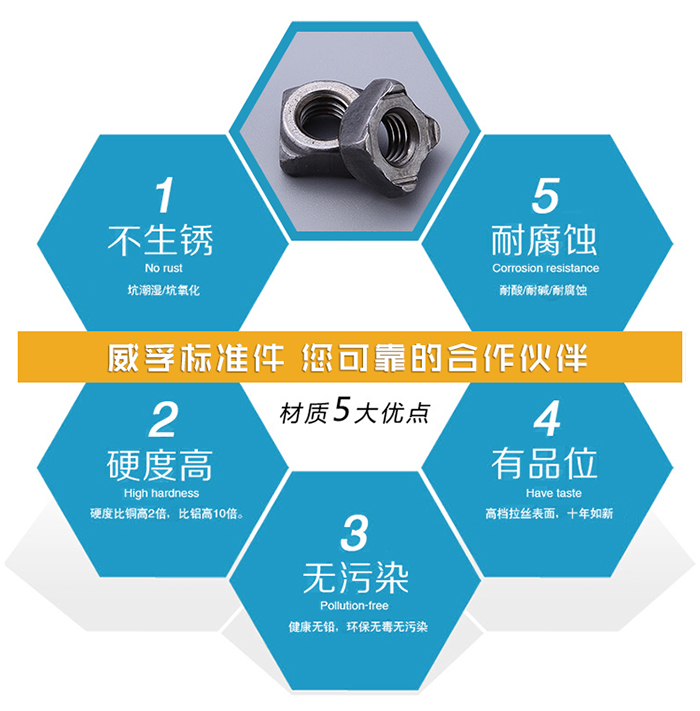 四角焊接螺母是一種在螺母外適合焊接的螺母,一般是可焊接的材料製成的而且較厚適與焊接,焊接是相當於把兩個分離件變成一個整體,用高溫將金屬融化後混合到一起再冷卻,中間會加入合金,內部是分子力的作用,強度一般比母體強度大[1] 。焊接參數的實驗要看焊縫的熔合大小,根據熔合大小調節焊接參數,直到消除缺陷。當然焊接質量的好壞與焊前處理有關,清灰、油漬等。
