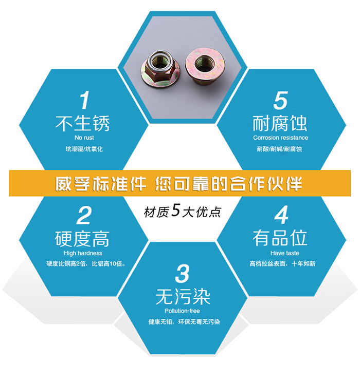 一般常見的法蘭麵尼龍鎖緊螺母規格大致都在M20以下,因為大部分法蘭麵尼龍鎖緊螺母都是用在管道及法蘭盤上,所以受工件約束,法蘭麵尼龍鎖緊螺母規格同螺母相比比較少一些。M20以上的一些法蘭麵尼龍鎖緊螺母大多為平麵法蘭,就是法蘭麵上沒有齒紋,這些螺母大部分用在一些特殊設備和特殊地方,一般銷售廠家沒有現貨。